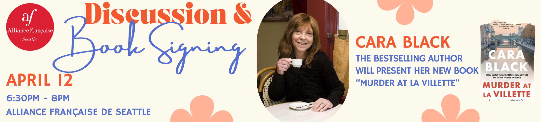 The Alliance Française de Seattle is delighted to welcome bestselling author Cara Black for an intimate reading and