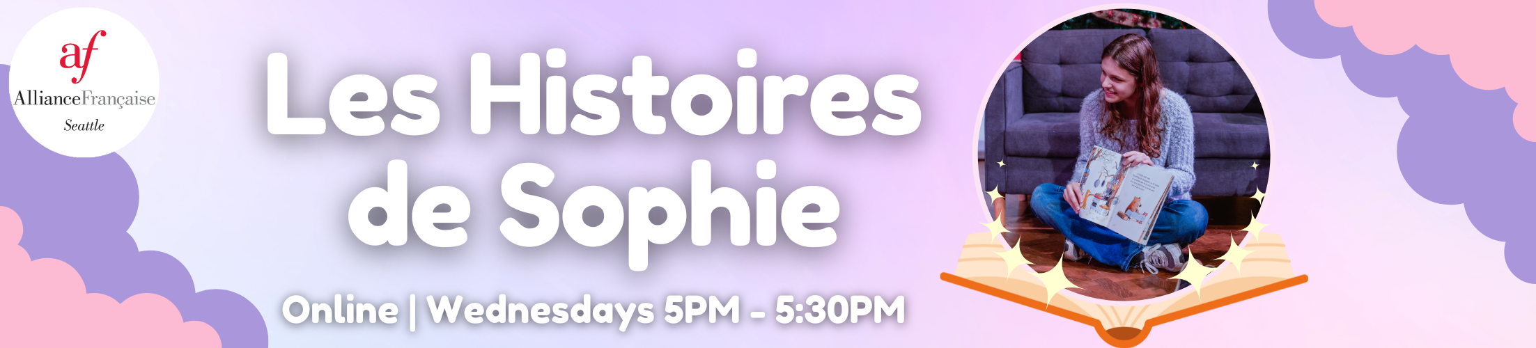 Join us online for a weekly storytime in French with Sophie! This 30-min Zoom session is great for your little ones who want to read along in French (open to all levels of French).