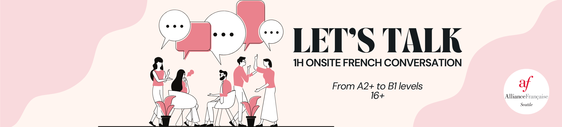 Are you looking to practice your French in a friendly, in-person setting? We invite you to our one-hour conversation event, Let’s Talk,